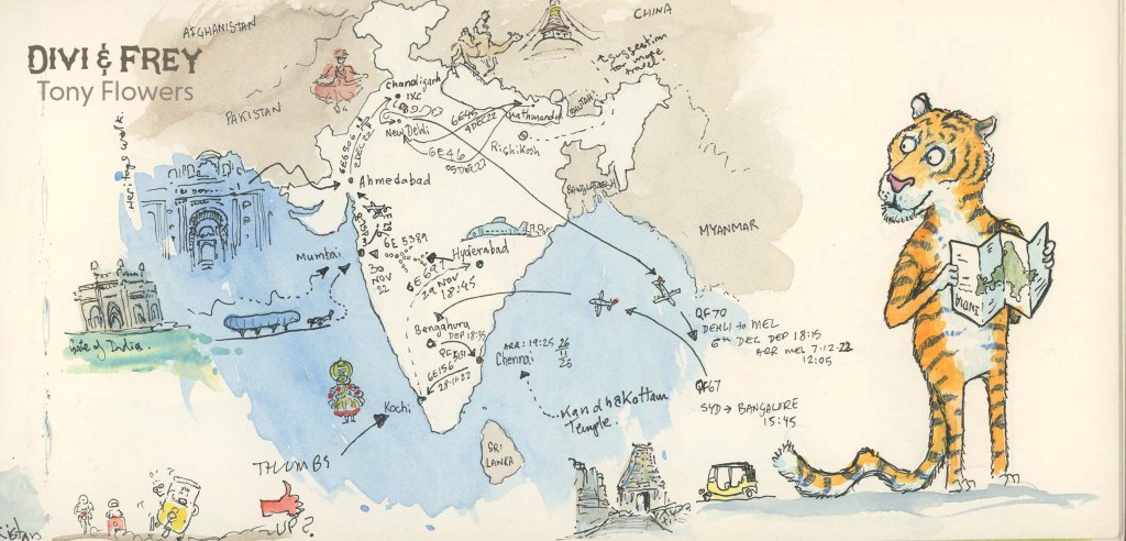 While the first Divi and Frey book is set in Paris and Egypt, and those locations have their own magic, the true starting point for the series—the emotional and creative ignition—was India. It was there, sketchbook in hand, that I saw how travel could transform intention into narrative.