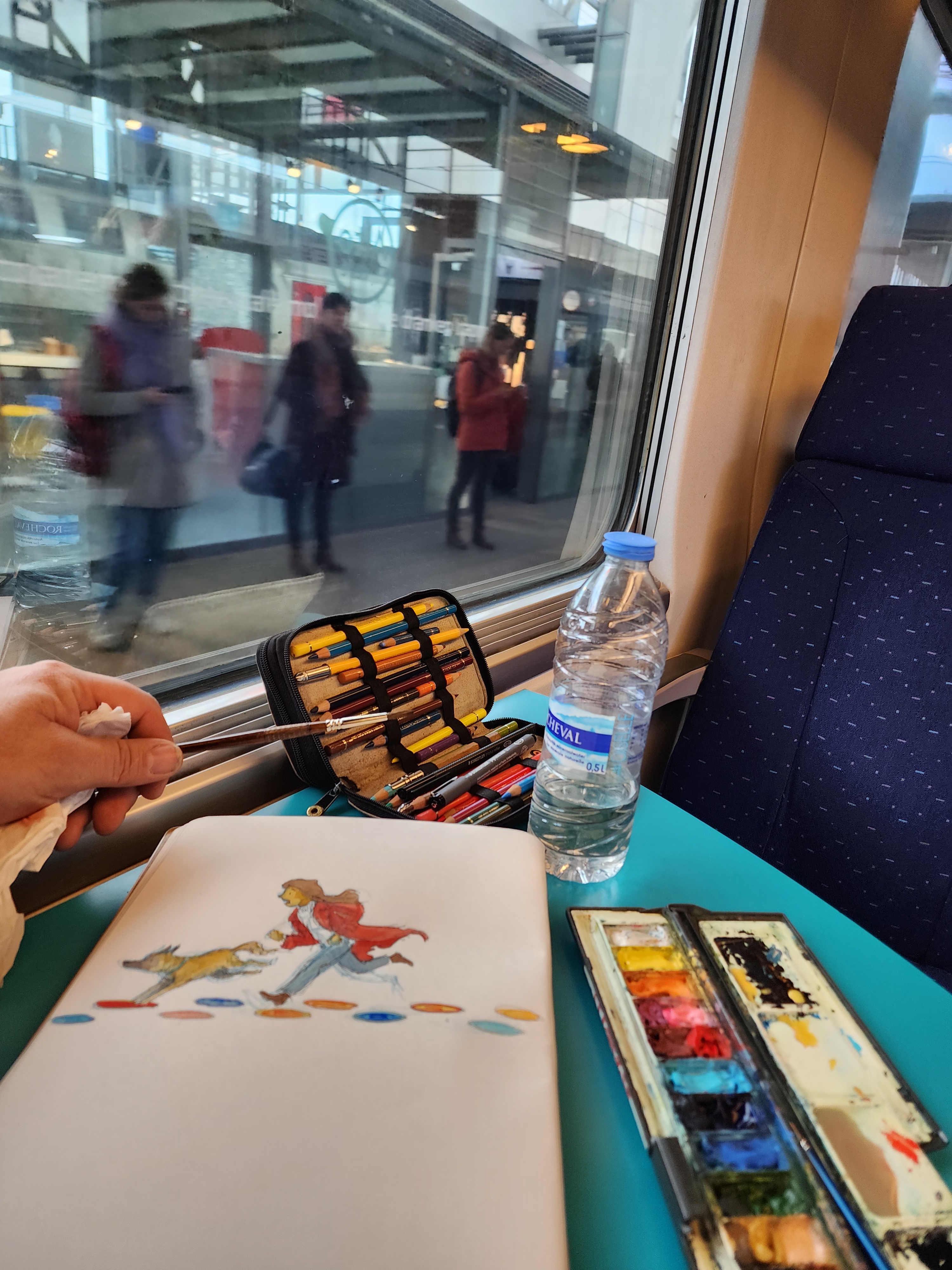 Sketching on a train (2024) while travelling in England