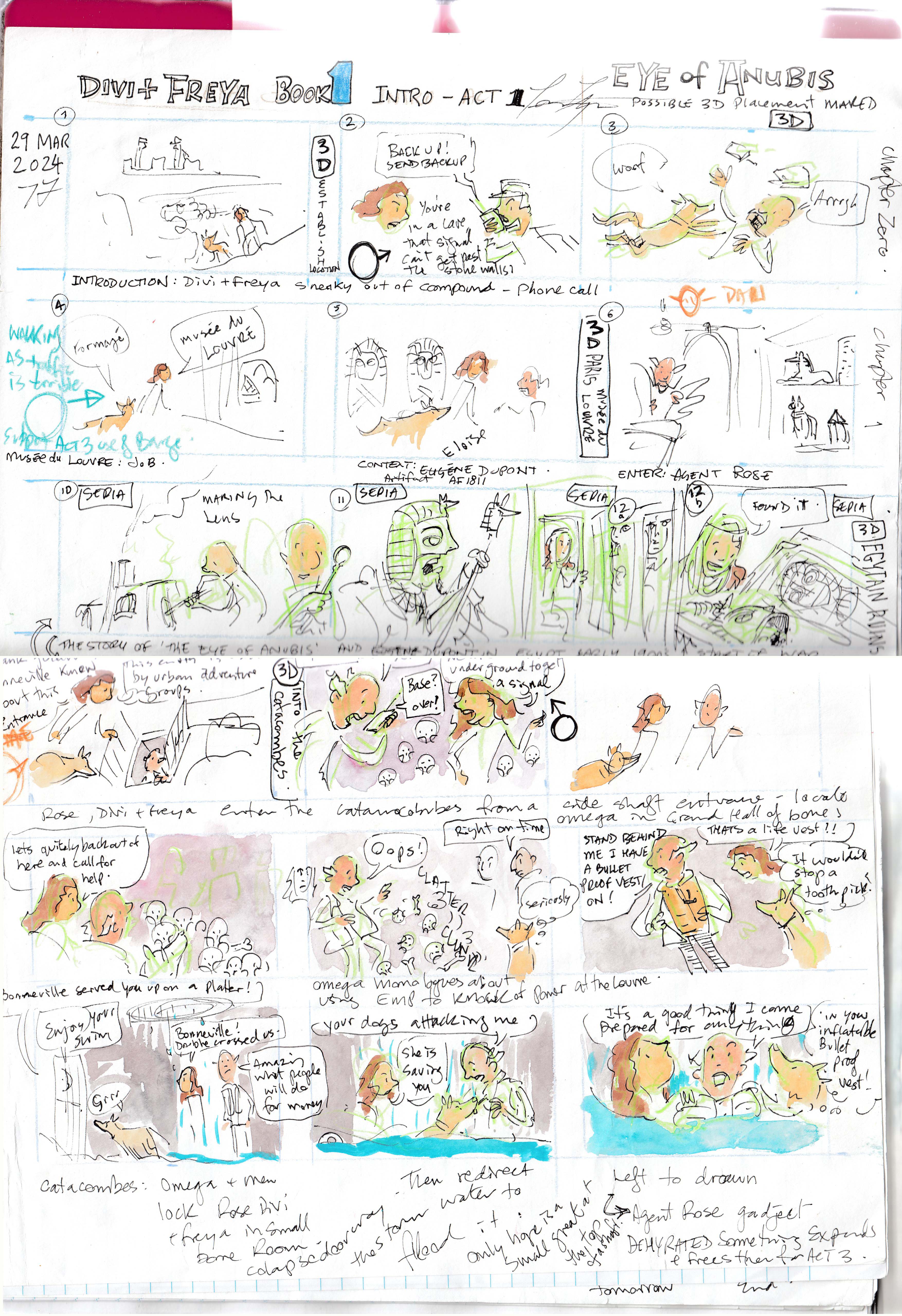 To create the Paris-based story with Egyptian sections for Book 1, I spent time as an artist-in-residence at the Cité des Arts in Paris and travelled for three weeks through Egypt. These experiences filled my sketchbooks with moments that would later shape the story.