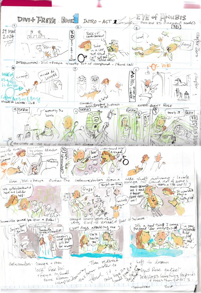 I wandered medieval alleyways imagining how Divi might get lost there… or escape something ancient and cursed. That immersive experience helped me breathe life into this graphic novel—a story that blends Egyptian mythology, Paris, and a cinematic adventure brough to life on the page.
