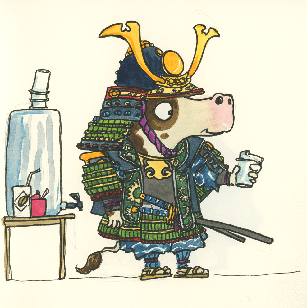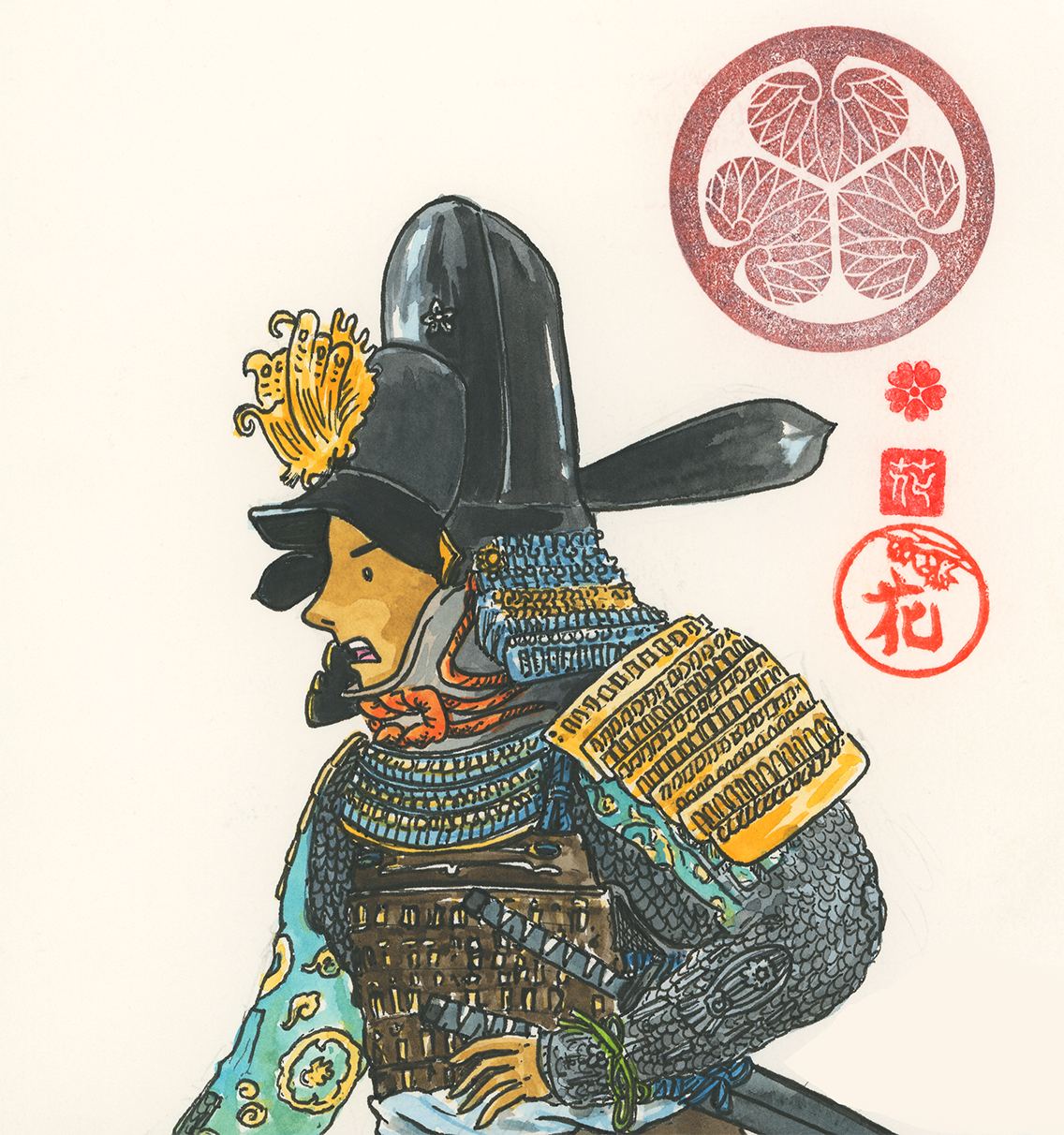 Miffy the Samurai (ink, watercolour and pencil on paper), 2019