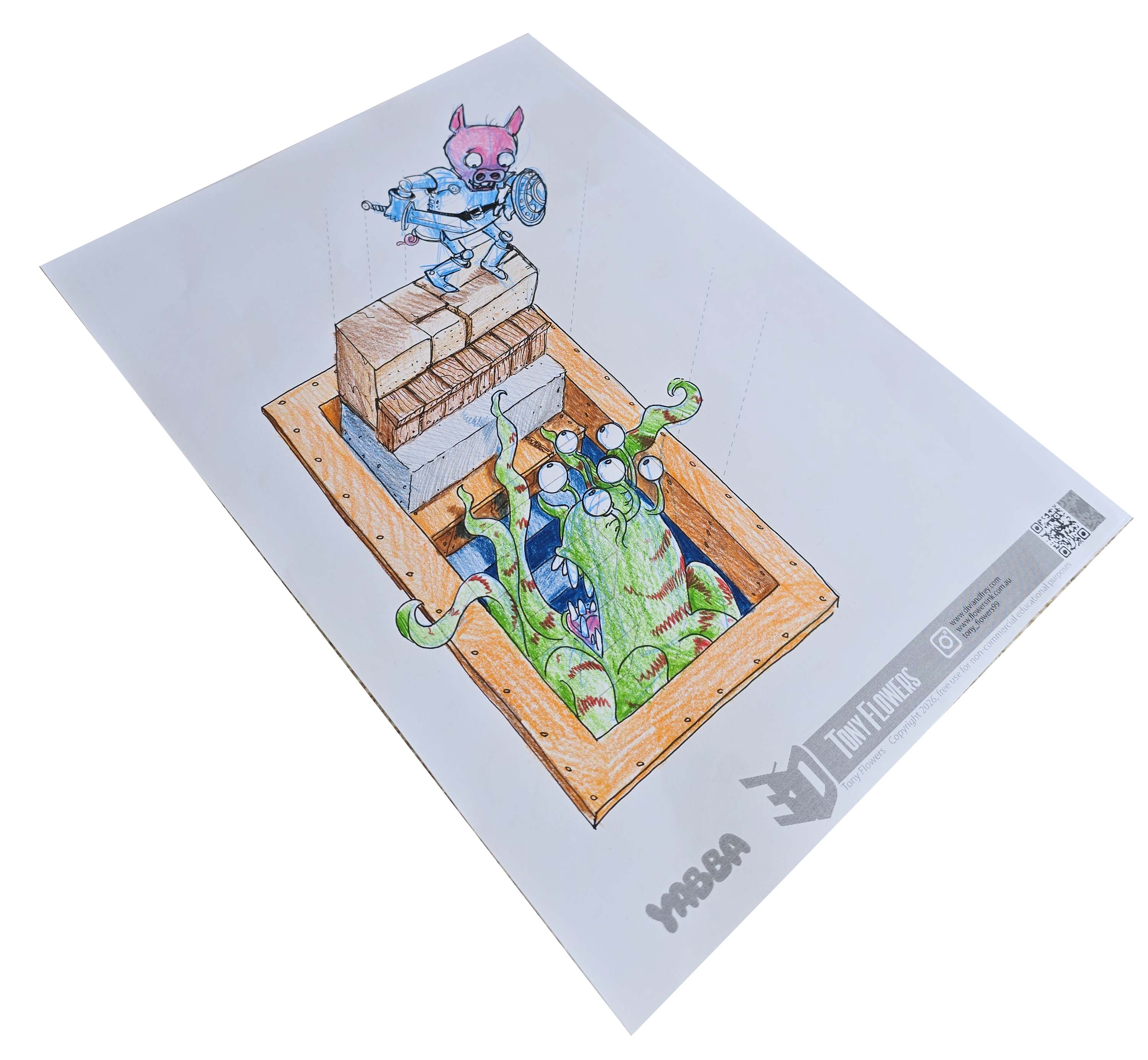 A camera lens makes this illusion even easier to see. Because the lens acts as a fixed focal point, it removes the tiny differences between your two eyes. When you get the camera in the right position when you are looking at the drawing through a phone or tablet camera, the illusion often “locks in” instantly. Everything lines up from a single viewpoint, so the depth becomes stronger and more convincing.